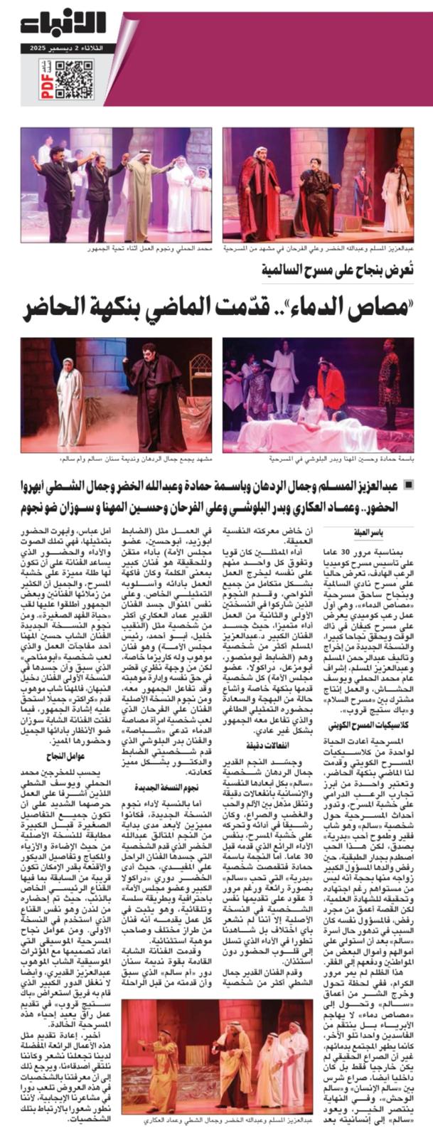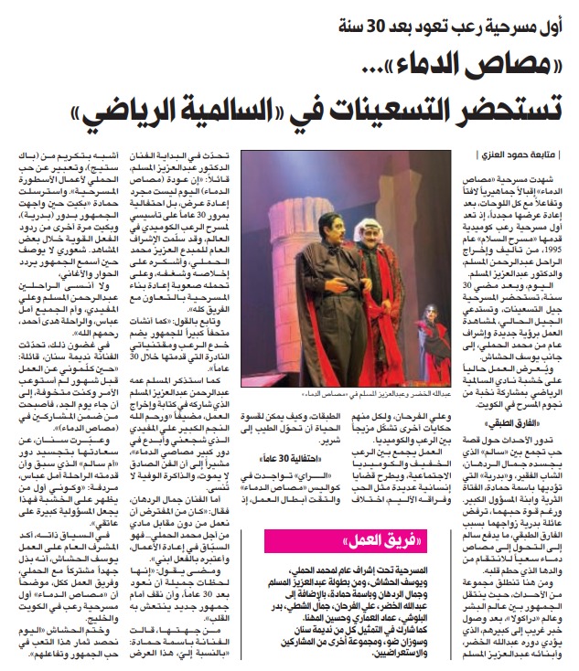 04ديسمبر4 ديسمبر، 2025 اول مسرحية رعب تعود بعد 30 سنة ” مصاص الدماء ” تستحضر التسعينات في السالمية الرياضي admin2025-12-04T11:40:23+03:00 By adminغير مصنف Read more...